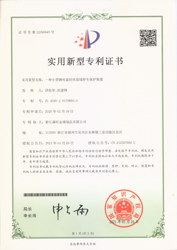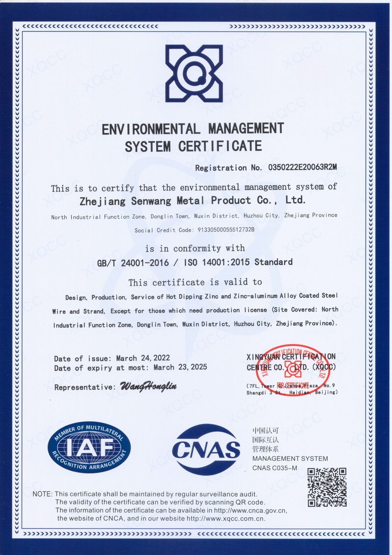 浙江森旺金屬制品有限公司成立于2012年,坐落湖州市吳興區(qū)東林鎮(zhèn)工業(yè)功能區(qū)。公司專業(yè)從事各類鍍鋅鋼絲、鋼絞線等產(chǎn)品的開發(fā)及生產(chǎn)。目前產(chǎn)品已廣泛應(yīng)用于各類通信光電纜,電力輸送,電氣化鐵路工程,各類堤壩防護及農(nóng)業(yè)溫室等工程領(lǐng)域。公司秉承“追求卓越品質(zhì),創(chuàng)建卓著信譽”的經(jīng)營理念,始終堅持專業(yè)化、規(guī)模化的經(jīng)營模式。